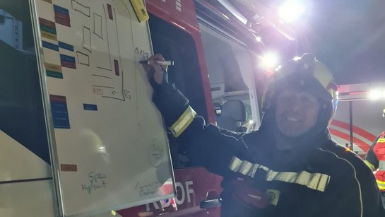 Als Einsatzszenario wurde uns ein “Brand in einer Tiefgarage” vorgegeben. Am Übungsszenario angekommen hatten wird die Aufgabe eine Personenrettung durchzuführen, den “Brand” in der Tiefgarage unter Kontrolle zu bringen, zu löschen und die angrenzenden Wohngebäude sowie deren Bewohner vor einem ausbreiten des Brandes bzw. vor einer Verrauchung zu schützen.